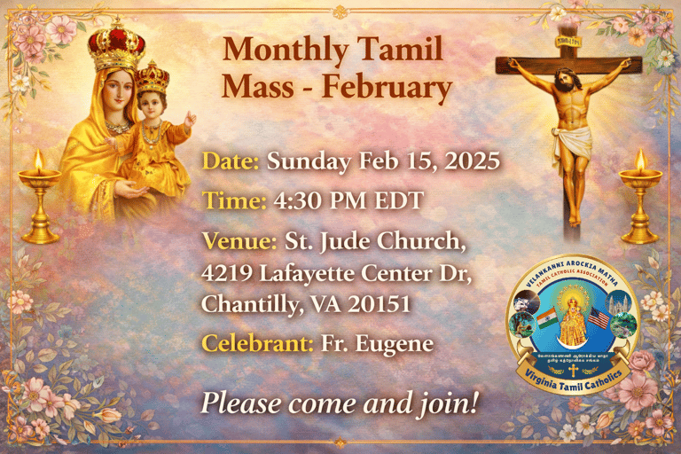 Reach out to connect with our Tamil Catholic community in Virginia: vatamilcatholics@gmail.com