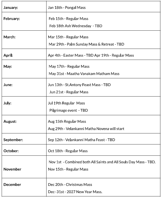 Mass Schedule for Year-2026